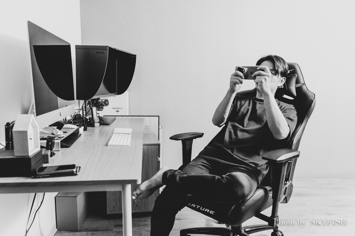 普段から会社のデスクワークに加え、写真の現像や動画編集でパソコンに向かうことが多いのですが、長時間座っているとそれはそれで疲れます。
