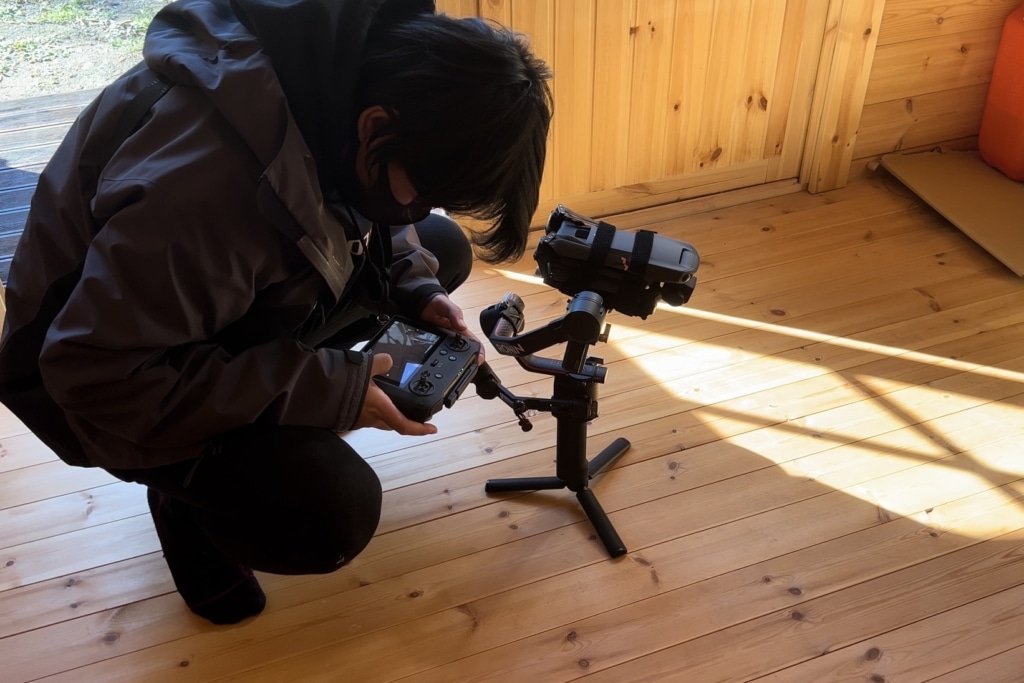 普通の空撮はもちろん、手持ちでの撮影もトライ。