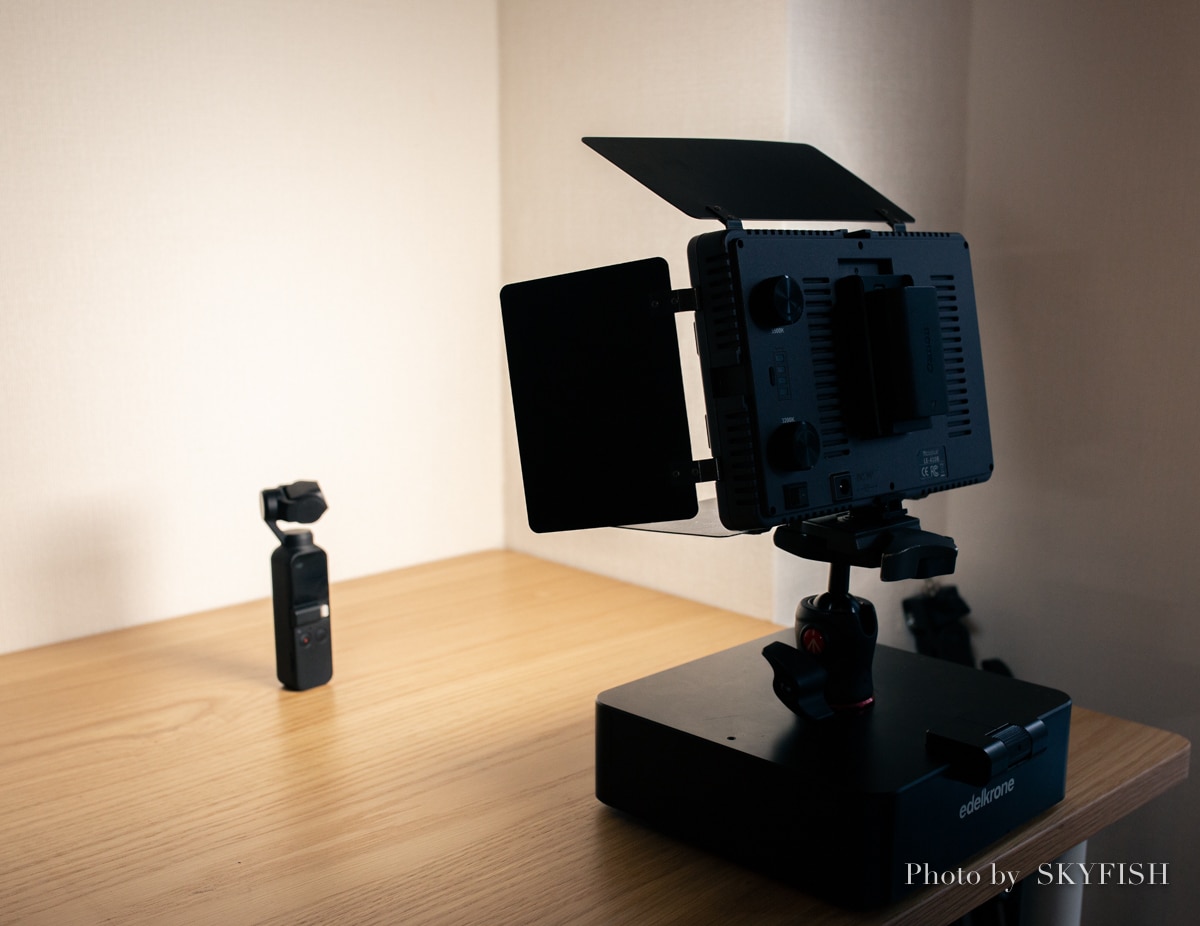 カメラは三脚に固定して、スライダーにはビデオライトを載せています。