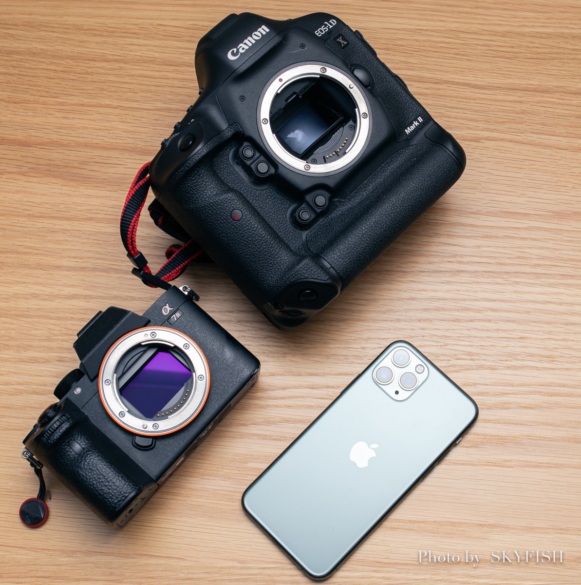 - 左がフルサイズ一眼レフカメラの1DX mk2