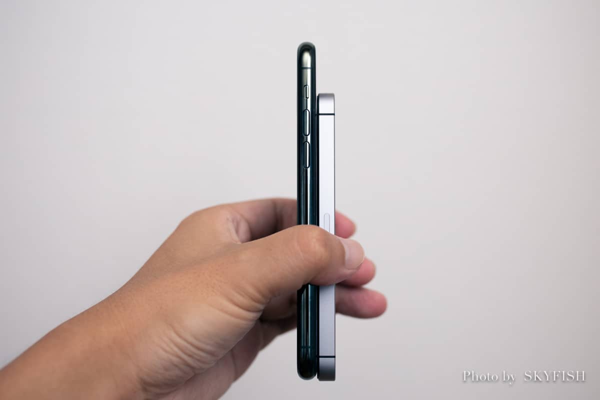 自分はメインでiPhone 11 Pro を使っていて、サブとして第一世代のiPhone SE を持っているので実機を比較するとこんな感じ