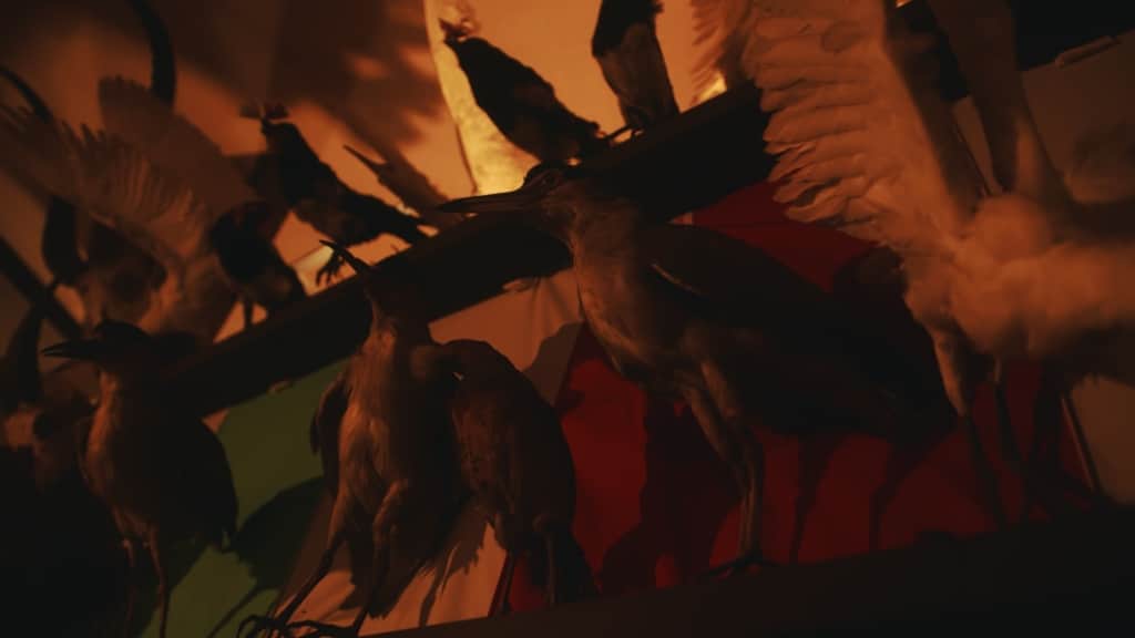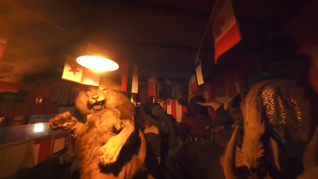 本物の剥製が無造作に積まれたカオスなスペースです。
