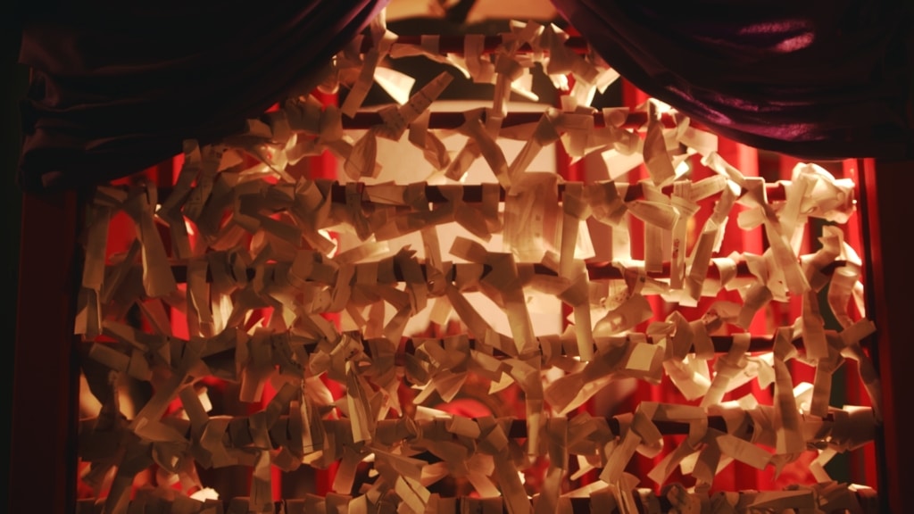 ジャポニズムな舞台。舞台を彩るのは秘宝館のマネキンらしい。