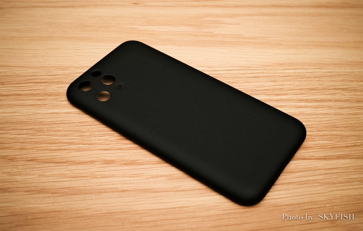 マットブラックのケース表面はラバー調コーティング。これがサラサラして手触りは良いのだけれど、若干滑りやすい。