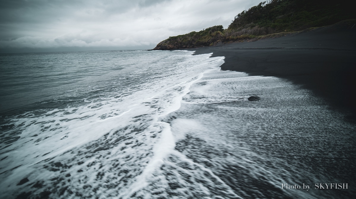 黒い砂浜が印象的なビーチ