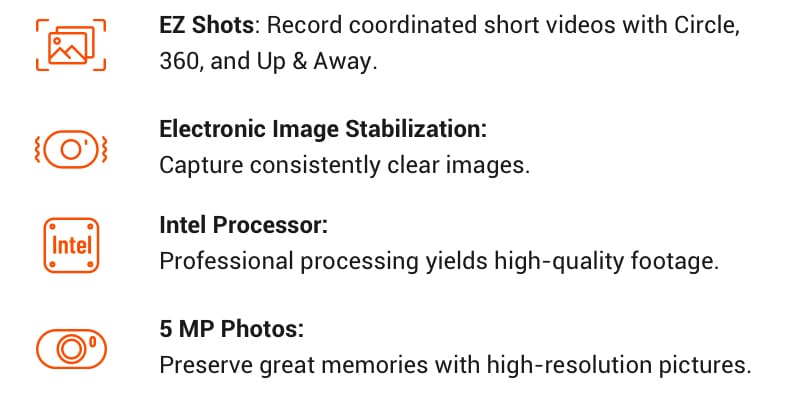 「EZ Shots」という機能で簡単に動画撮影が可能!360度や円を描いた飛行、後ろに飛びながら等の際に簡単に動画撮影できる様になっています。