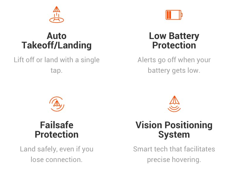 自動での離着陸、バッテッリー切れの際の自動帰還、 ビジョンポジショニング等、安全に考慮した作りになっており、子供でも楽しむことができそうです。